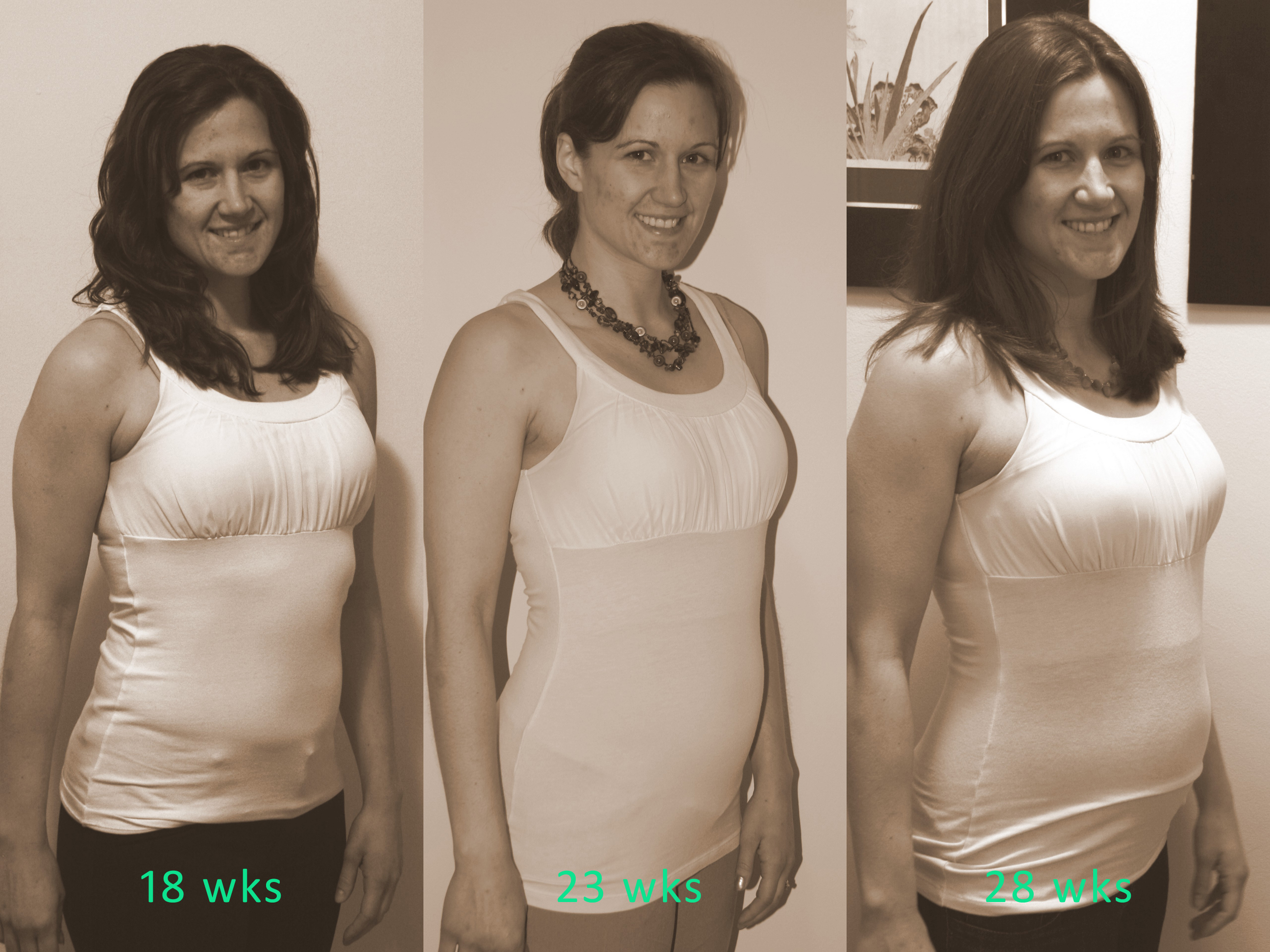 I continued to run about 2.5 mi 6 days a week throughout the first trimester, and didn’t get as tired as I thought I would – although I did note that it was more difficult to stay motivated at work and I was a bit more moody than usual. I also was having very vivid dreams – though none about the baby oddly enough. I believe I was able to keep the digestive and fluid retention challenges of pregnancy to a minimum by staying active and having a mug of caffeinated black tea or coffee with breakfast every morning. I did have a few days of general queasiness around 6-7wks, but that was it for the infamous 1st trimester morning sickness. I consider myself very lucky!