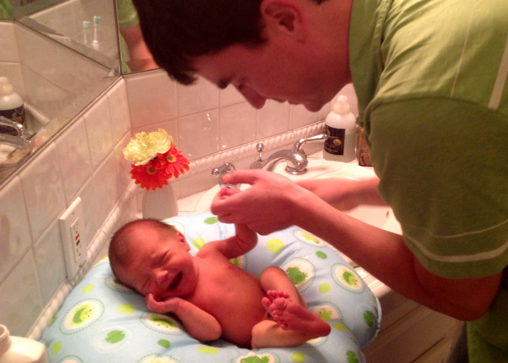 Day 3 – First sponge bath – not her favorite thing.