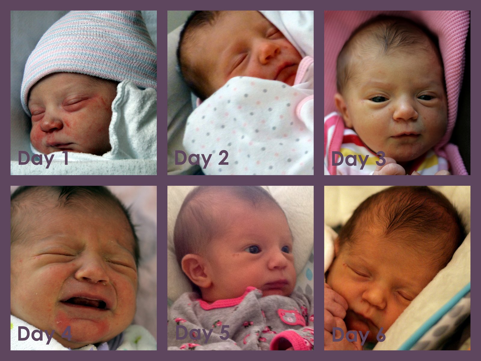 The next morning was our 2nd pediatrician visit, and after 4 good feedings since figuring out the latch earlier that morning, she was only down one more ounce to 5 lb 10 oz. Two days later, at the 3rd ped visit, she was up to 5 lb 14 oz and was back to peeing and pooping like she’s supposed to. Mom and Dad were both excited and resenting the increased dirty diaper production. She was also sleeping a bit better, although more so in the daytime than at night, unfortunately. Since the last visit, I’ve seen the lactation consultant and Sonia and I are slowly learning the ropes of breastfeeding properly, even though I still can’t keep her awake and feeding efficiently for more than 5 minutes at a time.