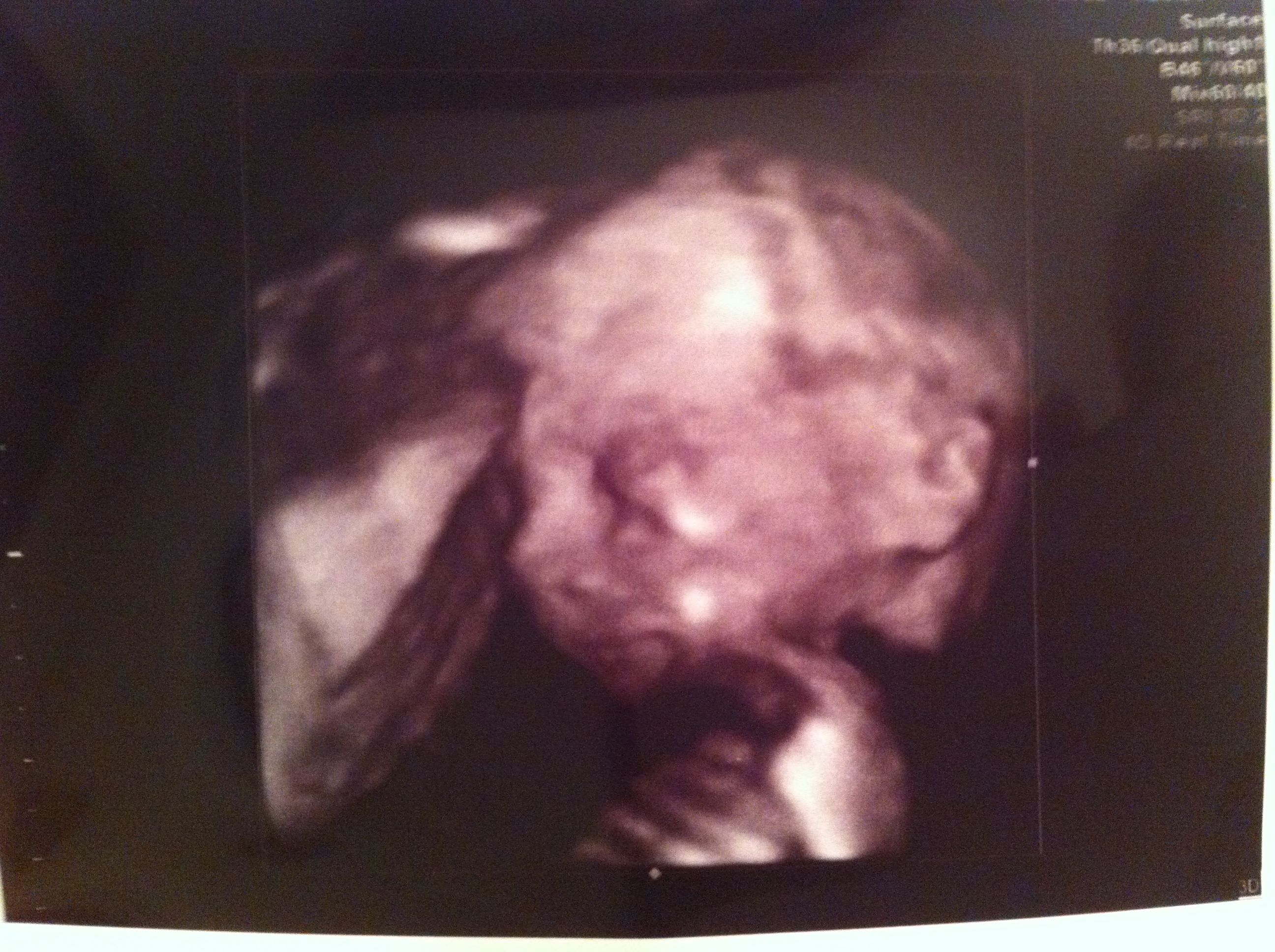 The “honeymoon trimester” was filled with a lot of great times, including sharing the pregnancy with the wider families and friends at the Budde Wedding in St. Louis, Thanksgiving in Charlotte, and New Years in Ohio, and a lot of great milestones, including feeling the first flutter of movement at around 15 wks (while listening to NPR talk about the fiscal cliff on the way into work), getting asked if I was pregnant by someone at work for the first time and finally switching to maternity clothes at 18 wks, and finding out we were having a Baby Girl at the 20 wk anatomy scan. I think she looks a little bit like my mom from the front, and Eric from the side.