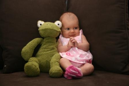 This week Sonia gained another 7oz, bringing her up to 6lb 12oz and making me a happy EBF mommy. She’s also filling her diapers as she’s supposed to, which thankfully fit her a bit better now that she’s grown a bit and we started with the gDiapers hybrid cloth/disposable system, which we have been happy with so far. It’s a little odd, but one of the places I can tell that she’s grown is her ears. Because I spend more than 3 hrs a day staring at her ears while I breastfeed, I have really noticed that what used to be not much more than flaps of skin are now well-formed, cartilage-stiffened, cute-as-a-bug’s-ear ears. 🙂