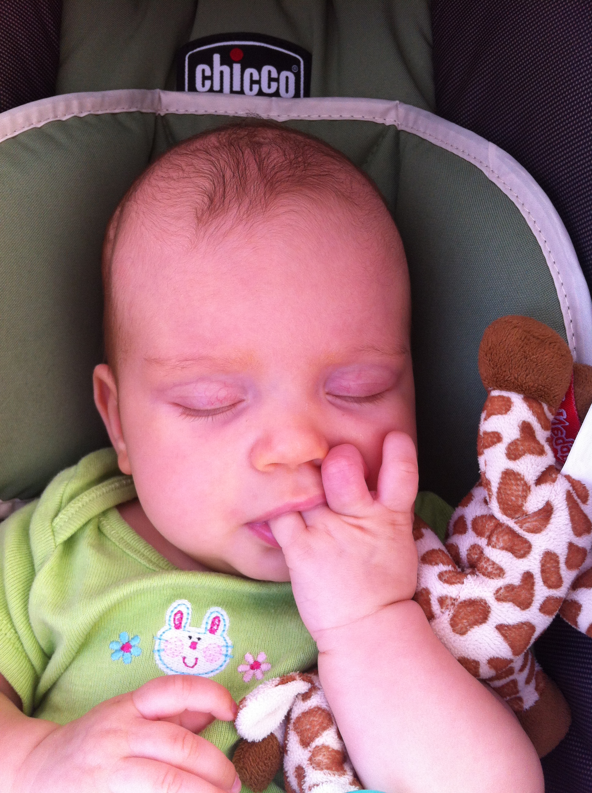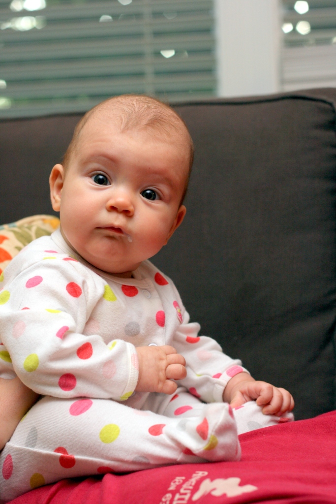 In terms of sleep, she hadn’t been making much improvement since the trip, until the night of her 3 mo birthday when she surprised us and slept for 9.5 hrs straight! We’ll see soon if that was a fluke or the start of a new habit. Here’s hoping it’s the latter, since Mommy has been going into the office as of Wednesday and could use the extra sleep.