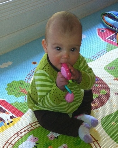 Last month we had the hives “scare”, but that passed with no sign of allergies. Sonia is back to bananas and nuts, with no side effects. However, she continues to roll from one cold to another, and also has started to get her 2 yr molars.