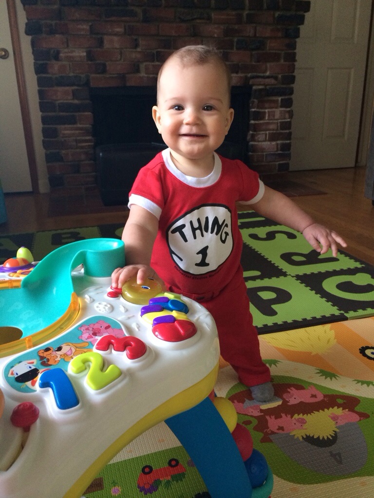 Dalton continues to want to sit and stand a lot, so we brought out the BebePod chair again. He still needs help of course, but he gets such a big smile on his face when he is up and about.