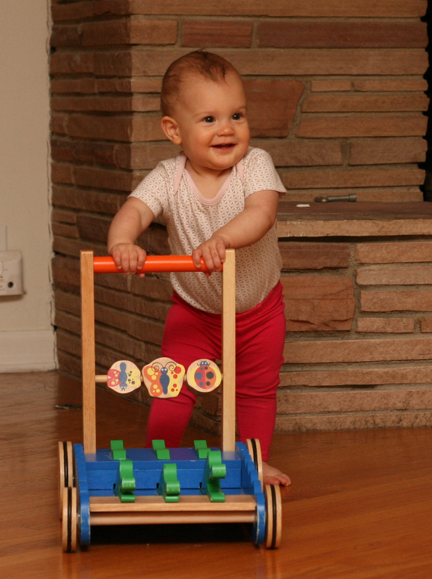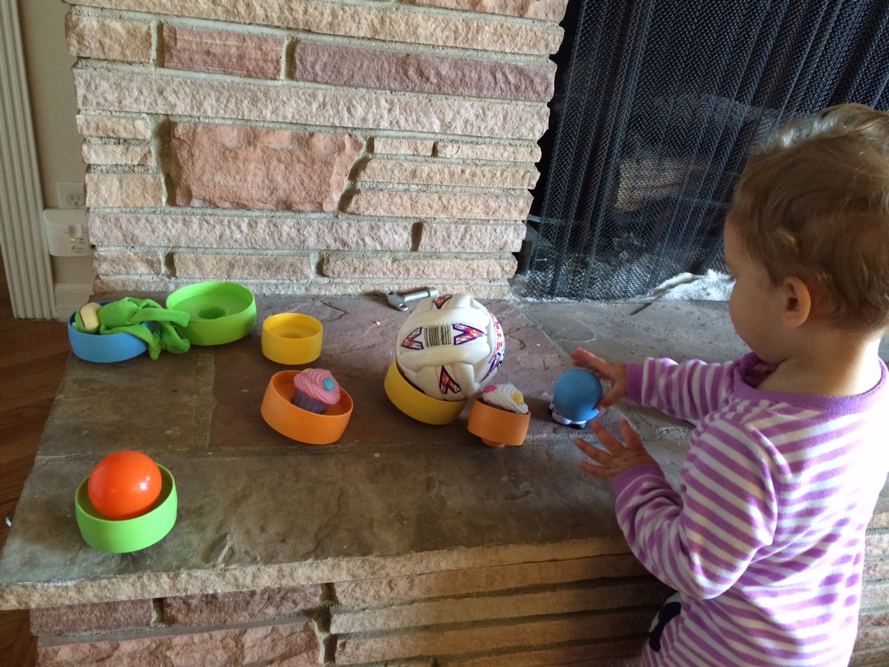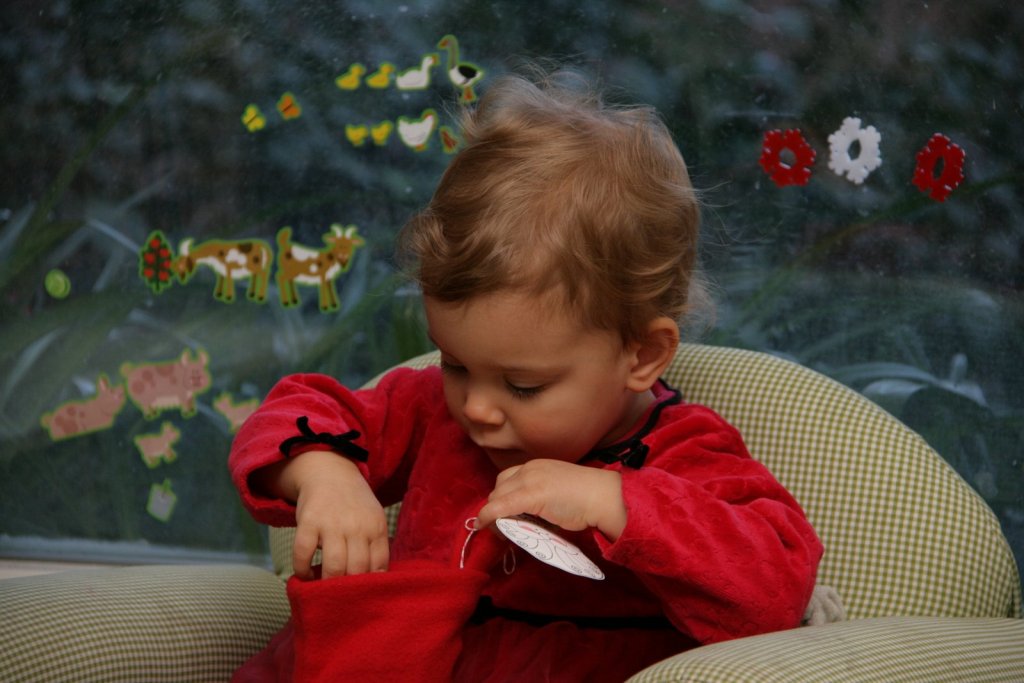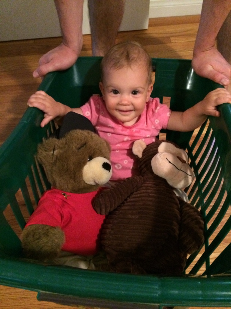 Sonia continues to be a chatterbox, and for the most part it is now intelligible. She talks mostly in the third person, but every once in awhile will say “I” and “you” in the right place. She knows that saying “please” is “asking nicely,” but still mostly whines or cries when “Sonia want ___.” One thing Sonia says all the time is “Where ___ go?” but she is learning to say “Where is ___?” and answer her own question.