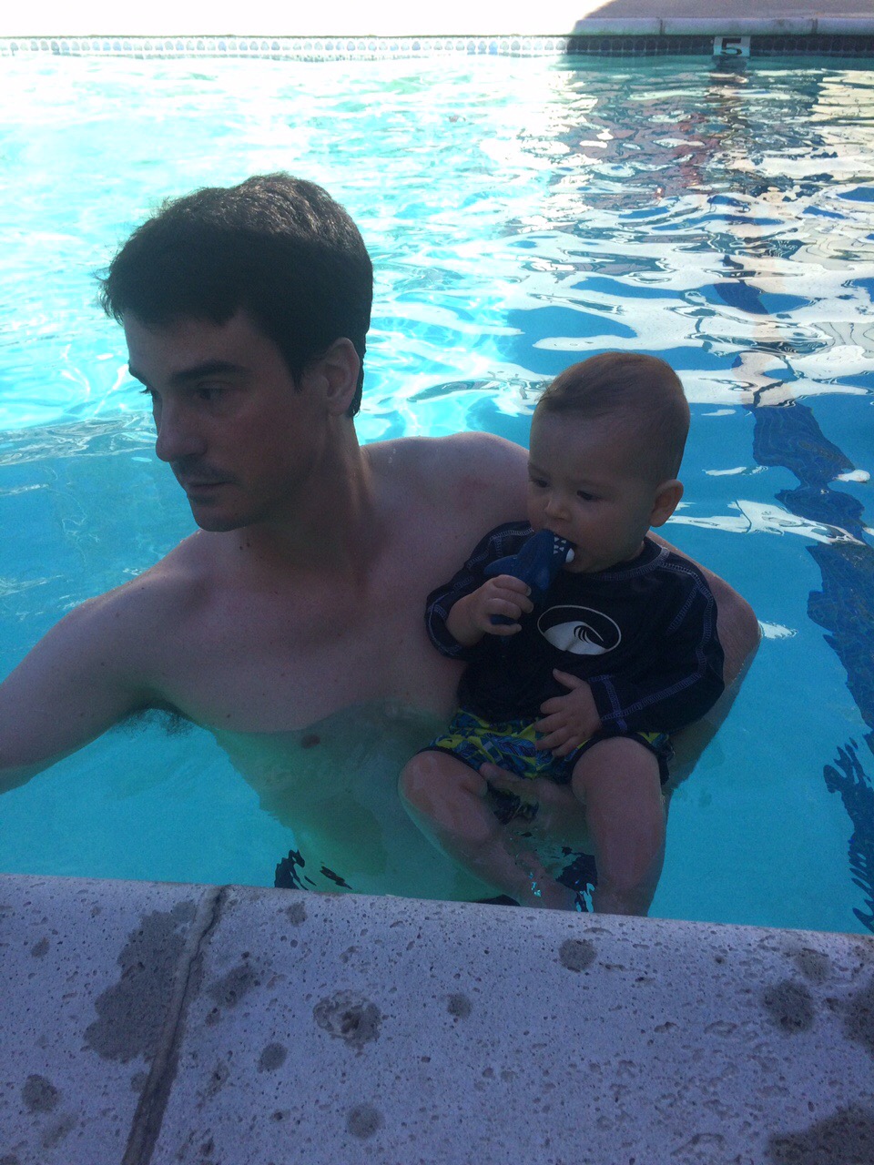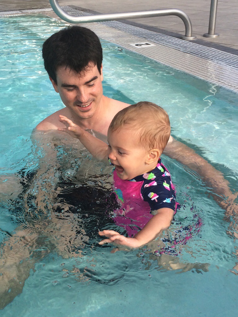 Dalton got in some really fun experiences this month, including his first time in a pool, at our friends’ condo.