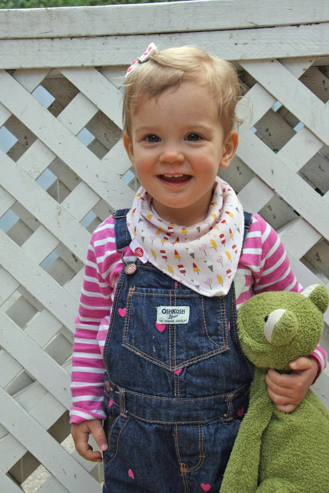 In general, she started interacting more with her stuffed friends, especially Ribbit, and the clarity of her speech improved noticeably. Other developments included some actual melody starting to come into her songs and words, and starting to draw shapes, and color closer to the lines. She also learned to interact with the phone and started to pretend to call Grannie to ask for more wipies (I assume she picked this up at school), and even took her first selfie (accidentally of course). For now, we don’t let her use the phone, though.