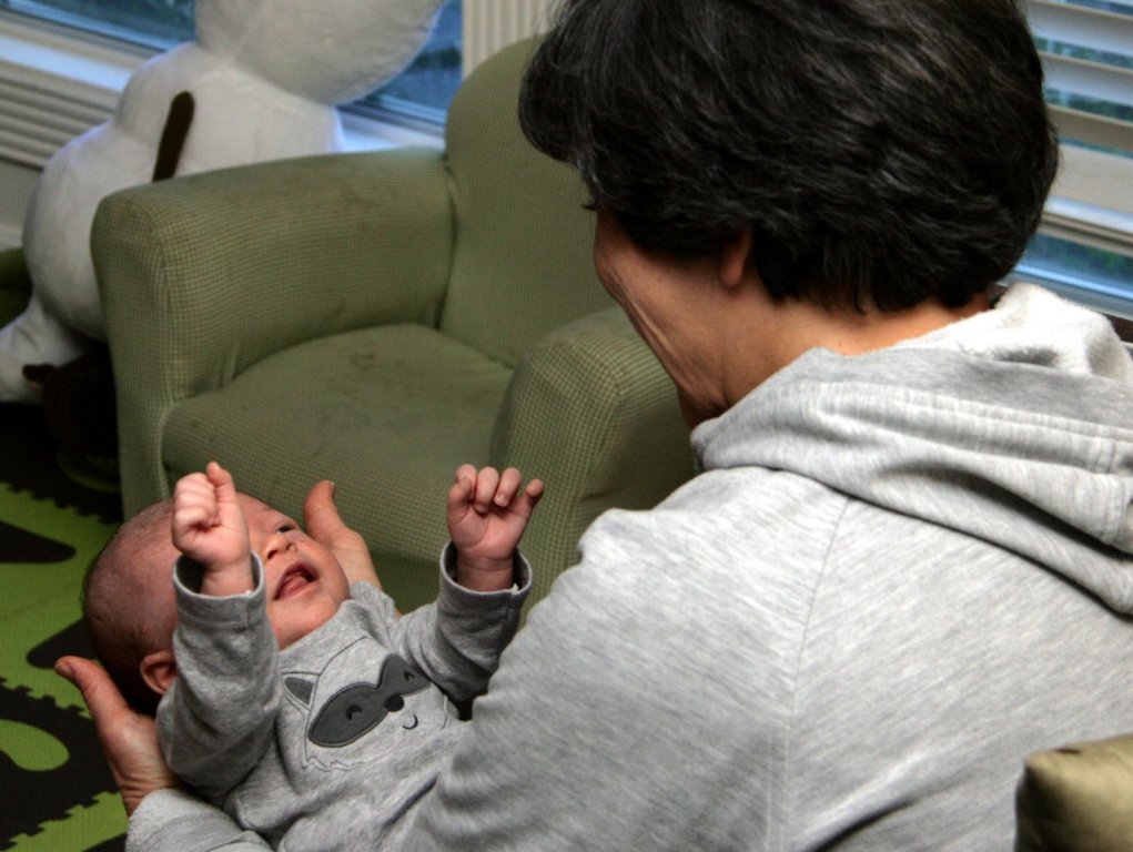 A couple other important milestones this month were: Dalton’s first flights, and Mommy going back to work. Dalton took both in stride. The flights were to Charlotte over the Easter weekend. While he was a bit young to help Sonia with the egg hunt, he still had lots of fun with Grannie and Grandad.