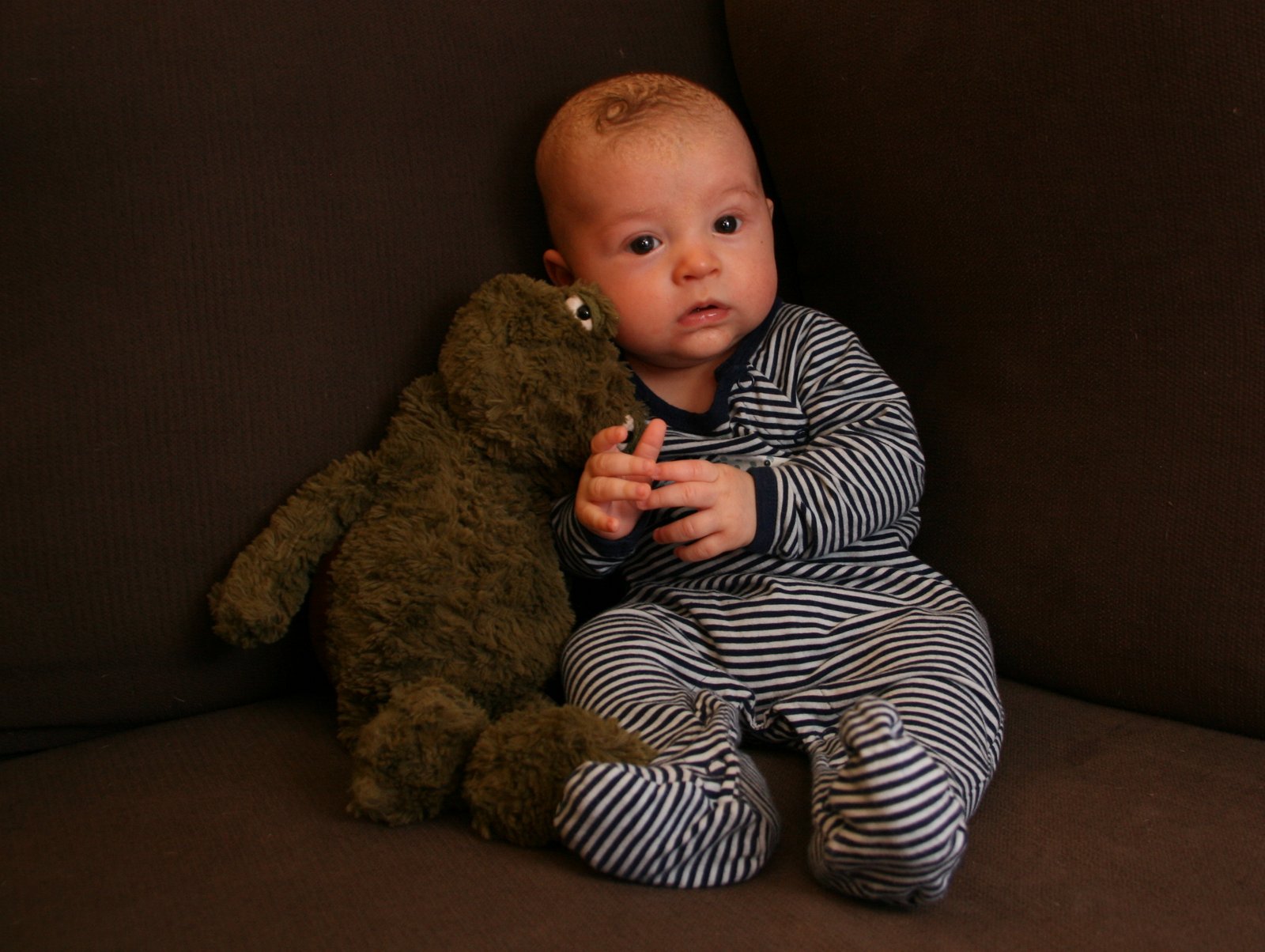 While he doesn’t have any real consonants to speak of yet, he is learning intonation and tempo, and starting to add to the conversation.