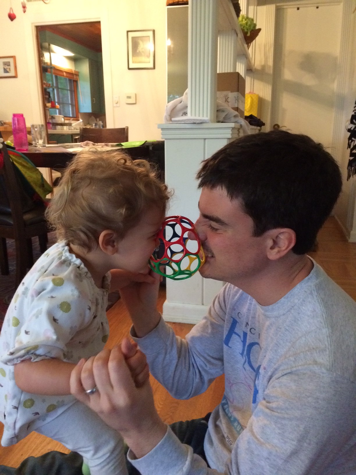 In general, Sonia has taken a more positive interest in Dalton, asking to “see Dalton” and even “Sonia hold Dalton” once in awhile. She is becoming more gentle with him when she’s paying attention, but still often doesn’t think about him being there and almost hits him while she’s trying to get up on the couch next to us for example.