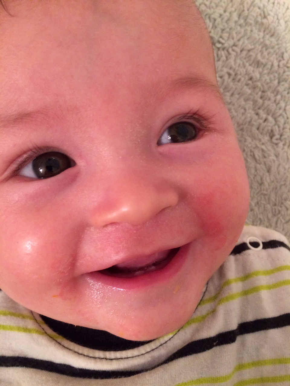 Mid-way through the month, those two bottom teeth cut through at the same time, so now our smiley baby is even cuter 🙂